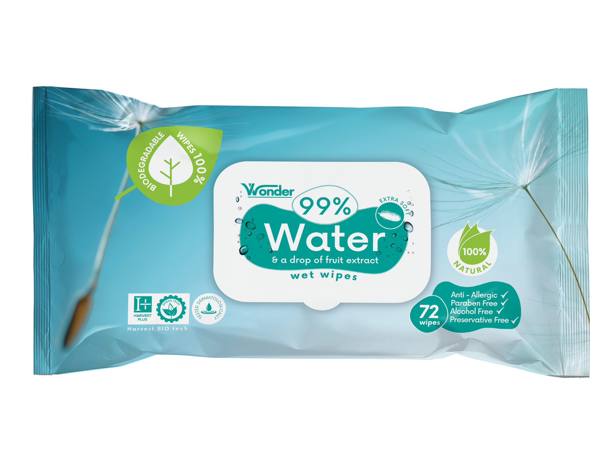 Wet Wipes contain 99% double purified water and 1% fruit extract.